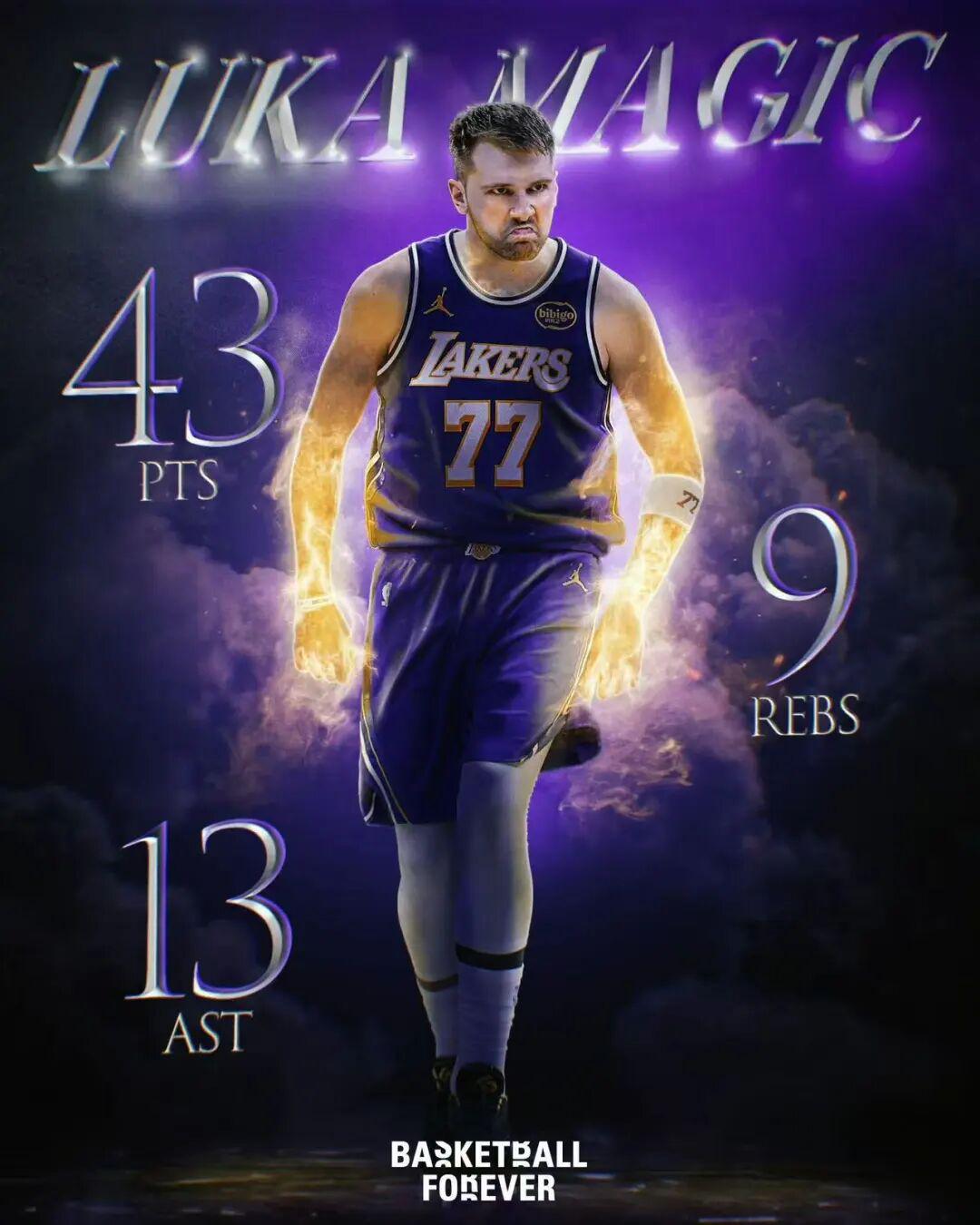 东契奇豪取43分9板13助,哦对了,此外